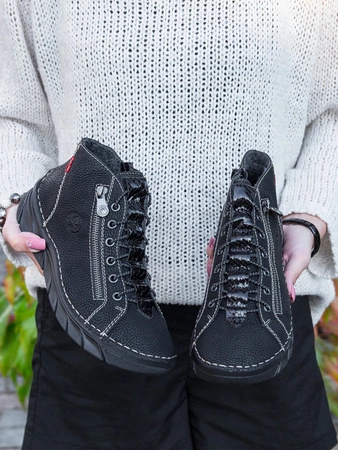 Rieker Botki Black ocieplane czarne