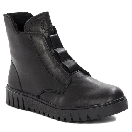 Y3458-00Najnowsza propozycja marki Rieker to niezwykle wygodne ocieplane botki damskie. Cholewka została wykonana ze skóry naturalnej w kolorze czarnym. Na wewnętrznej stronie cholewki zastosowano suwak ułatwiający zmianę obuwia. Ciekawym rozwiązaniem zamiast klasycznych sznurowadeł są elastyczne gumki, które umożliwiają precyzyjne dopasowanie obuwia do stóp. Okrągły nosek daje palcom dużo swobody i daje duże poczucie komfortu. Wnętrze i wkładka to miękka wełna syntetyczna, która doskonale chroni stopy przed chłodem w porze zimowej. Botki na podeszwie typu platforma o wysokości od 2,5 cm z przodu do 3,5 cm z tyłu. Niesamowicie wygodne, doskonale wpasują się w wiele ciekawych stylizacji casualowych.