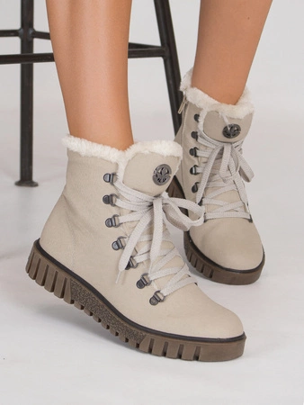Rieker Trzewiki damskie ocieplane Beige beżowe