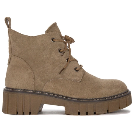 Sergio Leone Trapery botki damskie ocieplane Beż Zamsz