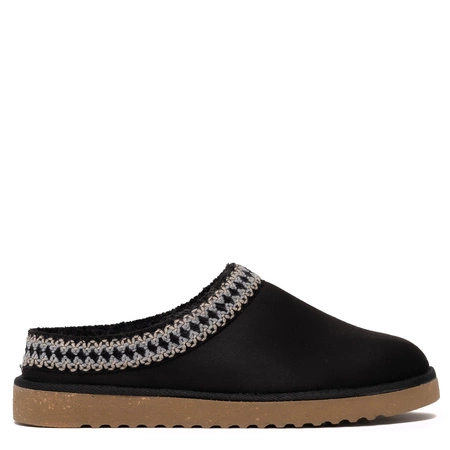 Kapcie damskie marki Inblu zostały wykonane z tkaniny w kolorze czarnym. Kapcie na grubej podeszwie z obcasem o maksymalnej wysokości 2,5 cm. Dodatkowym atutem klapek jest wkładka wykonana z tkaniny, zapewnia maksymalny komfort użytkowania. Idealne klapki na chłodne zimowe wieczory spędzane w zaciszu ciepłego, domowego ogniska. To fason dla Pań ceniących wygodę i oryginalny design.