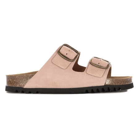 F32165-1023Damskie klapki Scholl w delikatnym, różowym odcieniu to połączenie komfortu, stylu i jakości. Ich klasyczny fason z dwoma paskami i regulowanymi klamrami zapewnia idealne dopasowanie do stopy. Wykonane z wysokiej jakości skóry naturalnej i tworzywa, są trwałe i przyjemne w noszeniu. Wnętrze oraz wkładka również zostały wykonane ze skóry naturalnej, co podnosi komfort użytkowania nawet w upalne dni. Lekka, profilowana podeszwa z tworzywa oraz płaski 3-centymetrowy obcas zapewniają wygodę na każdym kroku. Otwarte, zaokrąglone noski dodają całości swobodnego i letniego charakteru. To doskonały wybór na sezon wiosna–lato 2025 dla kobiet, które szukają stylowego obuwia codziennego z naciskiem na wygodę i zdrowie stóp.