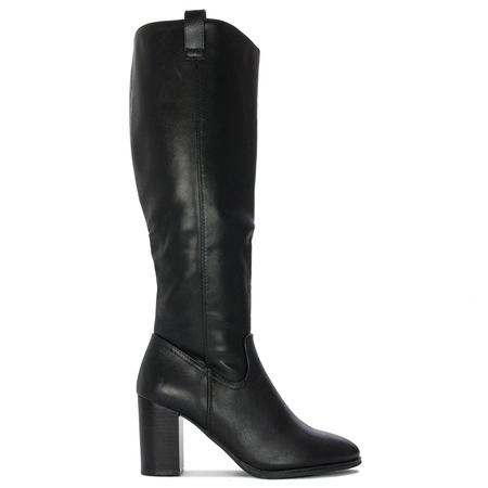 KZ279 CzarnyWygodne i modne obuwie to dewiza marki Sergio Leone, która z roku na rok coraz wyżej stawia poprzeczkę i podczas produkcji swoich wyrobów podnosi praktyczność i wartości reprezentujące ją na rynku. Prezentowany model to klasyczne, niezwykle proste, ale jakże efektowne i urzekające swą prostotą kozaki na słupku. Gładka cholewka jest wykonana z wysokogatunkowego tworzywa do złudzenia przypominającego skórę naturalną w klasycznym kolorze czarnym. Wygodny, okrągły nosek pozwala palcom na duża swobodę ruchu. Na wewnętrznej stronie cholewki wygodny suwak ułatwiający szybką zmianę obuwia. Ocieplane miękkim i przyjemnym w dotyku polarem wnętrze dba o utrzymanie odpowiedniej temperatury. Wygodna, dobrze wyprofilowana wkładka i podeszwa z wysokogatunkowego tworzywa, daje duże poczucie komfortu. Piękny obcas w kształcie słupka o wysokości 8 cm mimo dość znacznej wysokości jest stabilny, w naturalny sposób wysmukla nogę i stanowi dobrą podstawę dla całej sylwetki. Pasują do różnej długości sukienek, spodni i spódnic.