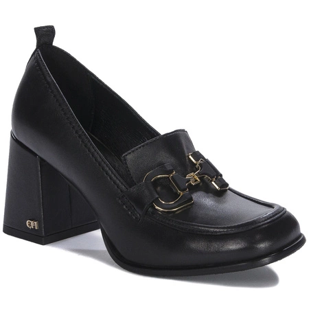 Chebello Czółenka damskie skórzane na słupku czarne