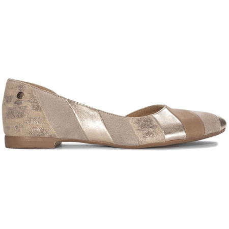 05834-04/00-5Prezentowany model wykonany został z naturalnej skóry w kolorze beżowym, złotym, zdobione złotą przecierką po bokach i za piętą. Wnętrze i wkładka to również skóra naturalna, dzięki czemu stopy mają zapewnioną właściwa cyrkulację powietrza. Płaski obcas daje poczucie stabilności i jest bezpieczny dla kręgosłupa. Balerinki damskie to typ obuwia, który szturmem podbił serca kobiet w każdym wieku i na całym świecie. Są symbolem niesamowitej wygody, ponadczasowej klasy i niezaprzeczalnej kobiecości. Modele marki Maciejka oprócz tego, że zawsze są zgodne z aktualnie obowiązującymi trendami mody to wykonane są z najwyższej jakości surowców. Jakość: I. Balerinki to typ obuwia, który doskonale sprawdza się zarówno na co dzień, w pracy, czy też podczas wieczornych spotkań w gronie przyjaciół. Wyprodukowano w Polsce.