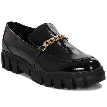 Sergio Leone Mokasyny damskie półbuty na platformie Czarny Lakier