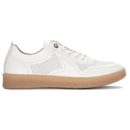 SP-111-BIAŁYW naszym sklepie internetowym przedstawiamy najnowszą propozycje od marki Sergio Leone - półbuty damskie Prezentowany model wykonany został ze skóry naturalnej białym kolorze. Model gwarantuje zarówno unikatowy wygląd, ale również trwałość i wygodę. Model jest sznurowany dzięki czemu dopasujemy go według naszych potrzeb. Półbuty na platformie wysokości 3cm, idealnie sprawdzą się do codziennych jak i sportowych stylizacji. Jakość pierwsza. Jakość: I.
