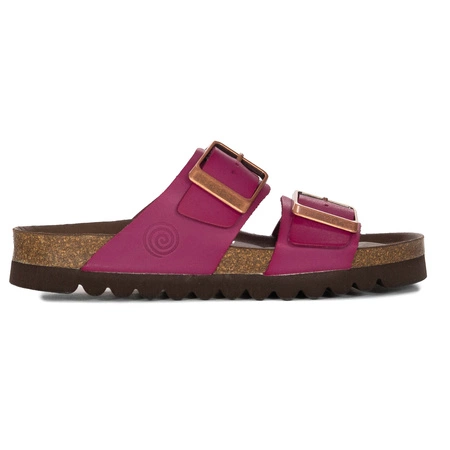 700686-43Dr. Brinkmann klapki damskie w intensywnym różowym kolorze to stylowe i wygodne obuwie na sezon wiosna-lato 2025. Wykonane z wysokiej jakości skóry naturalnej, zapewniają trwałość, miękkość i komfort noszenia przez cały dzień. Platformowa podeszwa z wysokogatunkowego tworzywa oraz płaski obcas o wysokości 3,5 cm gwarantują stabilność i odpowiednie wsparcie dla stóp. Otwarta pięta i regulowane paski z metalowymi klamrami pozwalają na idealne dopasowanie do stopy, co zwiększa wygodę użytkowania. Te modne klapki Dr. Brinkmann to must-have dla kobiet ceniących styl, wygodę i oryginalne kolory w codziennych stylizacjach.