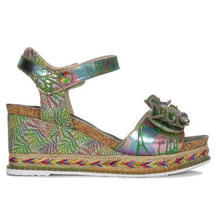 0006899Laura Vita sandały damskie na koturnie w kolorze oliwkowej zieleni to propozycja dla kobiet ceniących styl, wygodę i oryginalny design. Wykonane z naturalnej skóry, zapewniają miękkość, przewiewność i komfort nawet w ciepłe dni. 8-centymetrowa koturna optycznie wydłuża sylwetkę, a stabilna podeszwa gwarantuje wygodę podczas chodzenia. Model posiada rzepowe zapięcie, które ułatwia dopasowanie do stopy, a kwiatowe zdobienia na paskach dodają sandałom artystycznego charakteru. To idealne buty na wiosnę i lato 2025, doskonale komponujące się zarówno z sukienkami, jak i casualowymi stylizacjami.