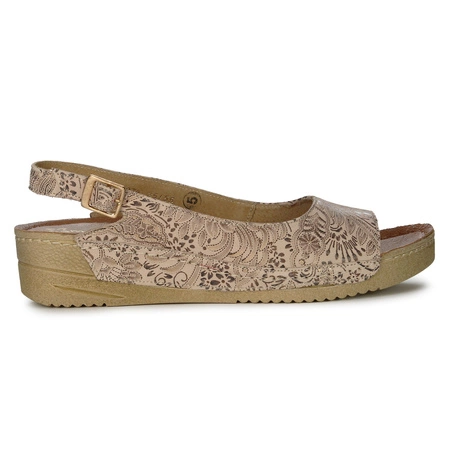 Maciejka Sandały Damskie Skórzane Beż + Złoto