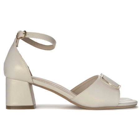 SK874 PerłowyLekkie sandałki damskie na słupku to najnowszy projekt od Sergio Leone. Sandały zostały wykonane z wysokogatunkowego tworzywa przypominającego skórę w kolorze Perłowym z delikatnym połyskiem. Regulacja na sprzączkę, dostosuje sandałki do tęgości naszej stopy. Wnętrze wykonane zostało z wysokogatunkowego tworzywa, a wkładka z naturalnej skóry dla podniesienia komfortu użytkowania. Słupkowaty obcas o wysokości 5.5 cm, jest stabilny i w elegancki sposób wysmukla sylwetkę. Klasyka w letnim i wiosennym wydaniu. Jakość: I.