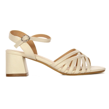 SK-893-PERŁOWYLekkie sandały damskie na słupku marki Sergio Leone. Sandałki zostały wykonane z wysokogatunkowego tworzywa lakierowanego w kolorze beżowym. Regulacja na sprzączkę, dostosuje sandałki do tęgości naszej stopy. Wnętrze wykonane zostało z wysokogatunkowego tworzywa, a wkładka z naturalnej skóry dla podniesienia komfortu użytkowania. Słupkowaty obcas o wysokości 6 cm, jest stabilny i w elegancki sposób wysmukla sylwetkę. Klasyka w letnim i wiosennym wydaniu. Jakość: I.