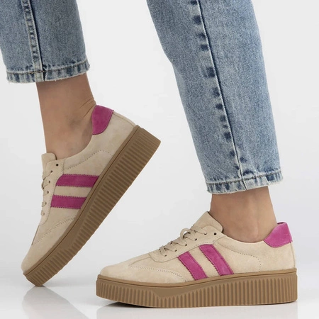 Filippo Sneakersy Damskie Skórzane Na Platformie Beżowo-Różowe