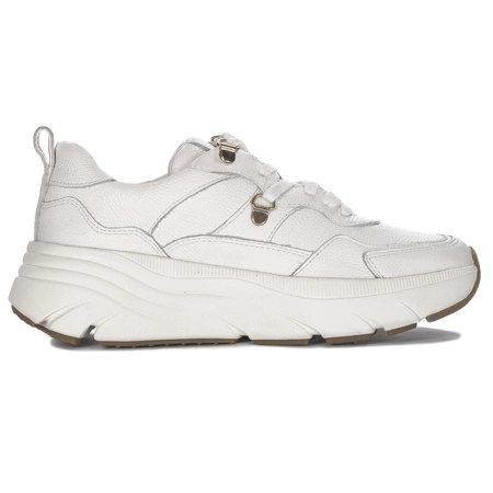 D36UFE 00046 C1000Prezentujemy najnowsze damskie sneakersy marki Geox! Wykonane są z kombinacji naturalnej skóry w białym kolorze. Wkładka i wnętrze to miękka tkanina. Podeszwa butów, wykonana z wysokogatunkowego tworzywa z technologią RESPIRA, zapewnia właściwą wentylacje stóp, a jednocześnie chroni przed dostawaniem się wilgoci. Wysokość podeszwy to max 5 cm. Buty są sznurowane, co umożliwia odpowiednie dopasowanie do stopy. Te sneakersy są idealnym wyborem dla kobiet, które pragną połączyć wygodę i styl. Mogą być noszone na co dzień lub na bardziej formalne okazje, a ich unikalny design przyciągnie uwagę i zrobi wrażenie na wszystkich wokół. Nie zwlekaj dłużej, dodaj te urocze sneakersy do swojej kolekcji już dziś.