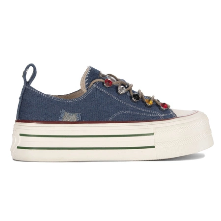RR2N4103GOE Półbuty Damskie Niebieskie to stylowe buty na platformie, które idealnie wpisują się w trendy sezonu wiosna-lato 2025. Wykonane z wysokogatunkowej tkaniny, gwarantują wygodę oraz przewiewność podczas codziennego użytkowania. Gruba, 5-centymetrowa podeszwa z wysokogatunkowego tworzywa zapewnia stabilność oraz wyjątkowy komfort chodzenia. Model posiada zamknięty, okrągły nosek oraz klasyczne sznurowanie, co pozwala na idealne dopasowanie do stopy. Te modne niebieskie półbuty na platformie świetnie sprawdzą się zarówno w casualowych, jak i streetwearowych stylizacjach.