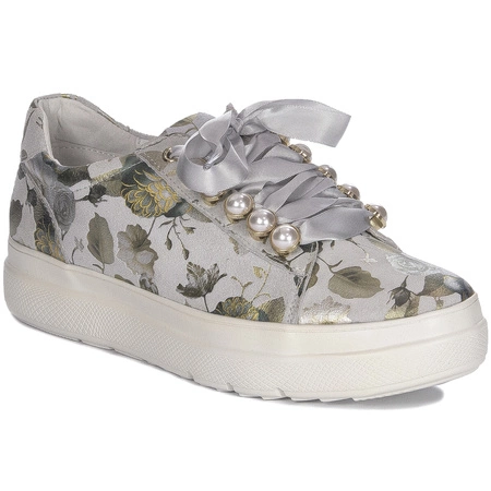 Maciejka Sneakersy półbuty damskie skórzane popiel w kwiaty