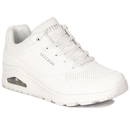 73690/W-WHPostaw na komfort i styl z Skechers Sneakersy Damskie 73690-W Białe! Te lekkie i nowoczesne buty sportowe zapewnią Ci maksymalną wygodę dzięki wysokiej jakości materiałom i podwyższonej podeszwie (4.5 cm). Ich klasyczny biały kolor pasuje do każdej stylizacji – od sportowych po casualowe. Sznurówkowe zapięcie gwarantuje idealne dopasowanie, a cholewka z oddychających materiałów pozwala stopom czuć się świeżo przez cały dzień. Idealne na sezon WIOSNA-LATO 2025!