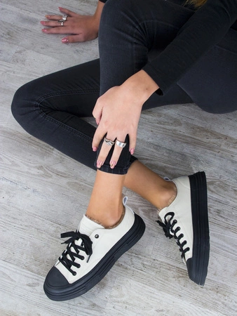 GOE to jedna z najbardziej rozpoznawalnych marek na świecie. Oferta marki jest skierowana do osób, które cenią sobie niezależność, są odważne i nie boją się modowych wyzwań. Prezentujemy nietuzinkowe trampki damskie wykonane ze skóry naturalnej w kolorze białym/ecru. Wnętrze wykonano ze wysokogatunkowego tworzywa oraz syntetycznego kożuszka, a wkładkę ze skóry ekologicznej. Tradycyjne sznurowadła stabilizują buty na nodze i pozwalają dopasować szerokość cholewki do indywidualnych potrzeb. Model na platformie o wysokości 4 cm. Usztywniony zapiętek zapobiega deformacji obuwia i pozwala utrzymać stopy we właściwej pozycji. Jeśli nie lubisz modowej monotonii, cenisz piękno, wygodę i lubisz przyciągać spojrzenia innych to ten model jest dla Ciebie. Nie zwlekaj, zamów już dziś!