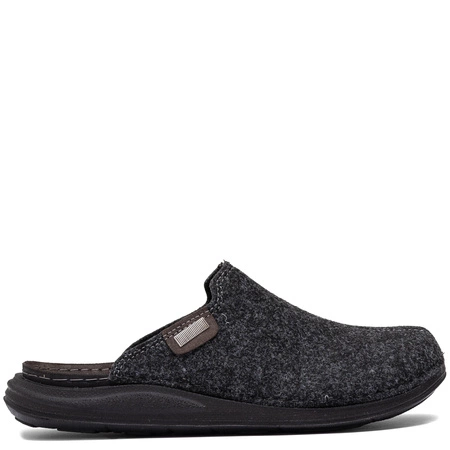 VE000010-GREYKapcie męskie w całości zostały wykonane z materiału- filcu w kolorze szarym. Umiejscowione na grubej podeszwie. Dodatkowym atutem klapek jest wkładka ze skóry naturalnej, która pozwala oddychać stopą. Idealne klapki na chłodne zimowe wieczory spędzane w zaciszu ciepłego, domowego ogniska. To fason dla Panów ceniących wygodę i oryginalny design.