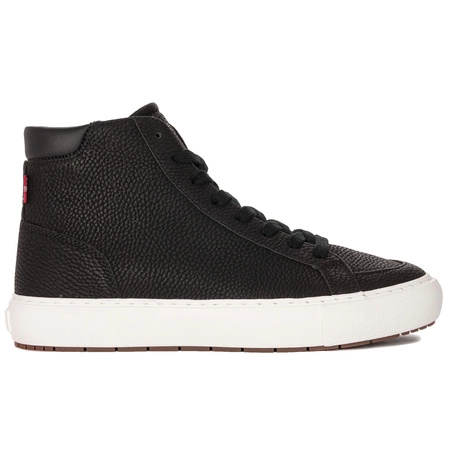 234718-661-59Prezentujemy najnowszy model sneakersów męskich marki Levi's.Obuwie zostało w zaprojektowane w kolorze czarnym, z wyróżnieniem białej antypoślizgowej podeszwy w wysokości 2,5 cm. Wierzch wykonano z tworzywa wysokogatunkowego. But zdobi z boku czerwone logo marki. Wnętrze jak i wkładka wypełnione zostało tkaniną bardzo przyjemną w dotyku .Okrągły, wygodny nosek daje palcom dużą swobodę i poprawia komfort noszenia. Tradycyjne czarne sznurowadła dopasowują obuwie do stopy. Bardzo lekkie, wygodne, można je zaliczyć zarówno do eleganckich jak i sportowych.