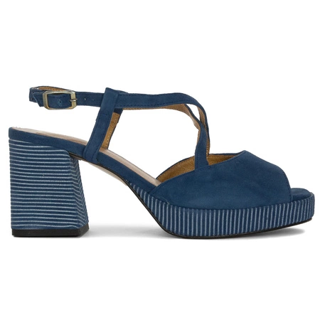 Maciejka Sandały Damskie Na Obcasie Skórzane Granatowe