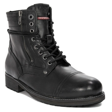 Pepe Jeans Botki Męskie Skórzane Ocieplane Czarne