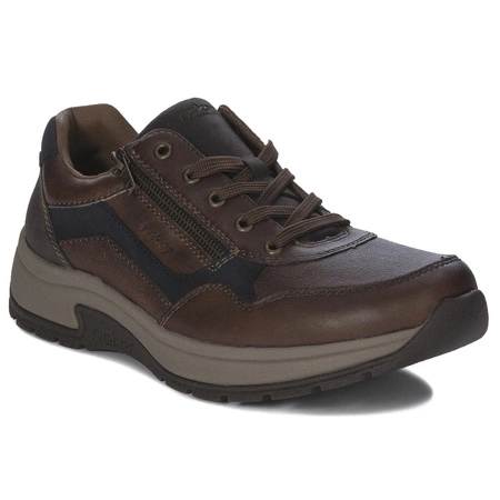 11001-25Prezentujemy buty męskie marki Rieker. Cholewka tych butów została wykonana z połączenia skóry naturalnej i materiału skóropodobnego w brązowym odcieniu. Wnętrze buta oraz wkładka są z miękkiej tkaniny. Model ten jest zapinany na sznurowadła, z dodatkowym zamkiem bocznym ułatwiającym zakładanie i zdejmowanie obuwia. Buty posiadają płaską podeszwę o wysokości 4 cm. Doskonale sprawdzą się zarówno do pracy, jak i na spotkania towarzyskie dla osób, które preferują skromny, klasyczny i wyważony styl.