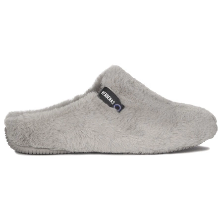 586 0500571Kapcie domowe damskie renomowanej hiszpańskiej marki Verbenas. Wykonane z miękkiego futerka w kolorze szarym "York Groseto Piedra", które delikatnie otula stopy dając poczucie niebywałego komfortu i ciepła. Okrągły nosek daje palcom dużą swobodę i pozwala na wygodne ułożenie. Wygodna, wkładka podklejona miękką pianką umożliwia kobiecym stopom wypoczynek i relaks. Model z odkrytą piętą. Elastyczna, antypoślizgowa podeszwa wpływa pozytywnie na bezpieczeństwo użytkowania. Idealne kapcie na chłodne zimowe wieczory spędzane w zaciszu ciepłego, domowego ogniska. To fason dla Pań ceniących wygodę i oryginalny design. Kraj produkcji: Hiszpania.