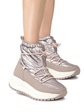 Filippo Botki Damskie Ocieplane Na Platformie Skórzane Beżowe
