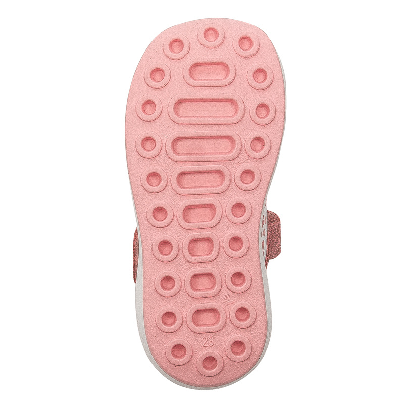 3905000CUOBRIf you are looking for shoes for your little princess that will combine charming design, comfort and quality, the Primigi brand has the perfect proposition for you. These beautiful girls' shoes are made of a combination of natural leather and plastic in pink and white, which gives them an original and girlish character. The shoes have a pattern in the form of hearts and flowers, which makes them look very cute and are perfect for summer days. The inside of the shoes is finished with a pink fabric that will provide softness and comfort for your daughter's feet. The white insole is made of soft natural leather, which will provide even more comfort. The sole made of high-quality material is 2 cm high, thanks to which the shoes will provide stability and comfort while walking. These are perfect shoes for little girls for summer holidays, walks or meetings with friends. The classic design of Primigi shoes will make them your daughter's favorite piece of clothing. Do not wait and find out about their quality today!