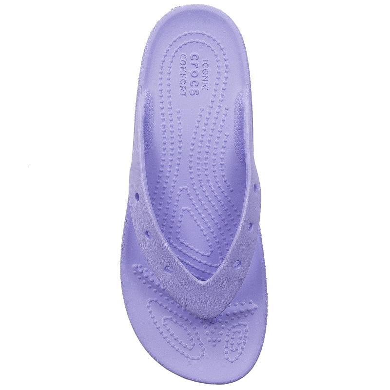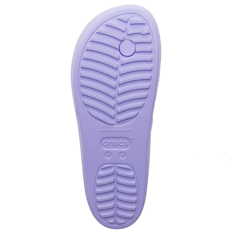 Women's slippers from the renowned Crocs brand. Made of the brand's patented Croslite material, in a purple color that perfectly fits into the summer climate. The feet hold up well, they work well in very high temperatures. Very light, durable, waterproof and easy to care for, clean water is enough. Insole with Iconic Crocs Comfort technology - equipped with foot massage nubs. The model has a height of 3.5 centimeters. The presented model is one of the most famous Crocs products. Practical, perfect for the city, for a walk by the sea or a trip to the forest.