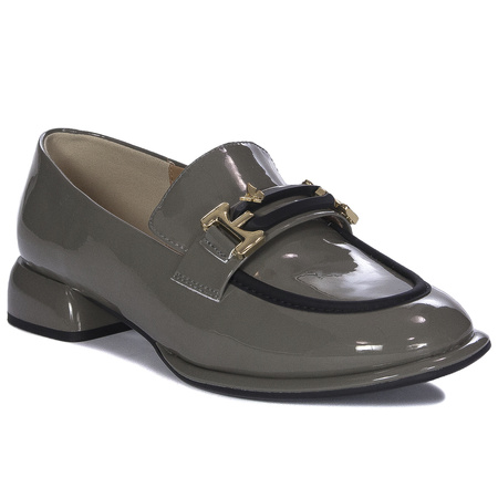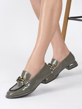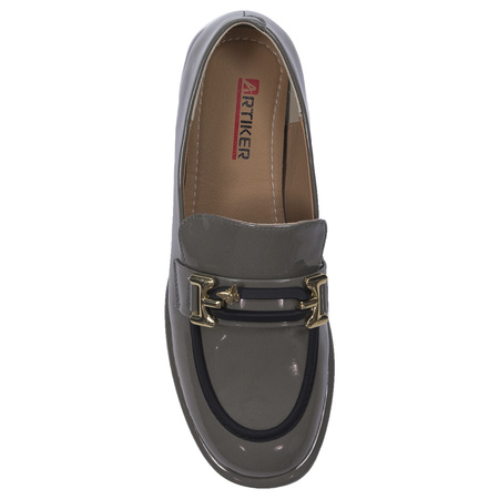 55C0412Women's semi-heeled shoes from the Artiker brand. They were made of top quality patent leather in an elegant “Grey” gray color. The interior and insole are made of natural leather. The sole of the shoe is made of high-quality plastic, which provides not only comfort and durability, but also cushioning when walking. The height of the heel is 3 cm. Half-shoes slip-on, which allows easy and convenient putting on and taking off. On the front there is an original, decorative application with a butterfly.