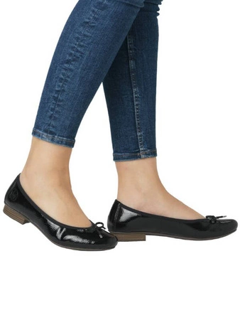 51950-00Women's ballerinas by Rieker are very elegant and classic. An ideal choice for women who appreciate style, comfort and high quality. The upper layer of the shoes is made of ecological patent leather in black. The insole of the shoes is made of soft natural leather, which ensures maximum wearing comfort. The interior of the shoes is made of fabric. The sole is made of high-quality flexible plastic. The ballerinas have a 2 cm high heel. This is an ideal choice for the spring-summer season to wear on warm days or to work. They will go perfectly with spring and summer outfits.