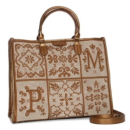 251410-VENECIA-BRONCPepe Moll Women's Brown Bag is an elegant bag that combines style and functionality. Made of high-quality fabric, it is characterized by a unique pattern that attracts attention and adds chic. Pepe Moll is a brand that perfectly combines fashion with practicality, and this bag is a perfect example. The brown color perfectly matches various styles, both everyday and for special occasions. This model comes from the Spring/Summer 2025 collection, which makes it an excellent choice for the upcoming seasons. Thanks to the spacious interior, the bag will hold all the most important trinkets, and its functional design ensures comfort of use. This is a great option for every woman who values elegance and high quality.