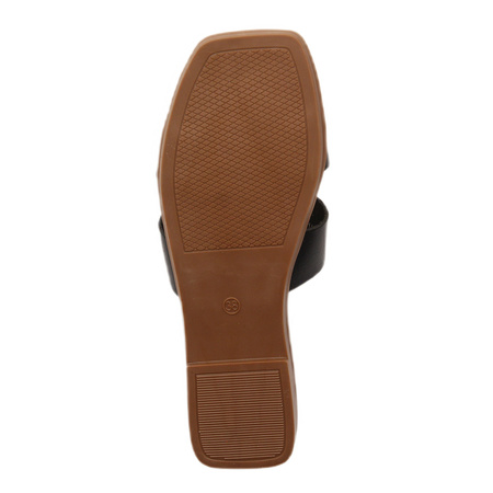SK-091HBlack Sergio Leone flip-flops are a minimalist proposal for summer 2025, ideal for women who value simplicity and comfort. The upper is made of high-quality ecological leather, which fits well on the foot and is easy to care for. The classic, open design with a square toe fits into current trends and allows for complete freedom of movement. The lack of fastening makes the shoes extremely practical and quick to put on. The 2 cm high sole ensures lightness and comfort during everyday wear. The interior and insole are also made of soft, ecological leather, which increases the comfort of use. These are universal flip-flops that are perfect for both the city and on vacation.