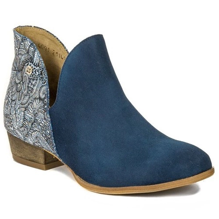 04091-47/00-5Do you feel your autumn looks are missing that one refined accent that slims the ankle and adds instant polish? Meet these Maciejka ankle boots—designed to elevate everyday outfits with a sculptural silhouette and exquisite craftsmanship. The front is cut from velvety navy suede that gently hugs the foot, finished with a dramatic V-shaped asymmetric topline that visually elongates the leg. At the back, smooth natural leather with an intricate, plant-inspired emboss creates a chic contrast and a subtle glow. A discreet side zip makes them easy to slip on and off, while the almond toe refines the profile. The stable 3 cm low heel gives just the right lift for all-day wear, and the closed heel counter keeps your foot securely in place.