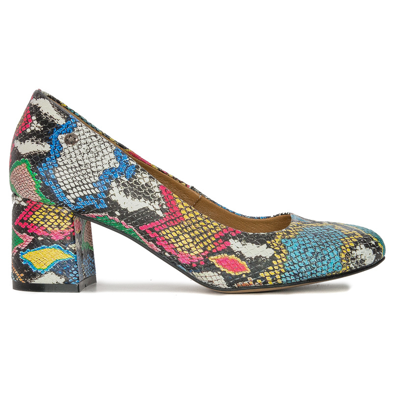 03356-39/00-1The Maciejka brand designs footwear for women who want to feel comfortable and fashionable, creates shoes by listening to the needs of customers and fulfills their dreams, surprising them with a bold cut, original combination of colors, extraordinary texture as well as high quality and impeccable workmanship. It shows how lightly you can play with fashion, while at the same time bringing out what is most beautiful in your body. We present another, timeless model of this brand 03356-39 / 00-1. The upper is made of natural grain leather with a multi-colored pattern resembling a snake / reptile skin. The interior and the insole are also made of natural leather, which greatly increases the comfort of wearing. The sole is a flexible, high-quality material. The block-shaped, low, 6-heel with the same pattern as the shoe is very stable and slims the figure in a natural way. The model is available in a wide range of colors. So if you value comfort and originality, this pattern is for you.