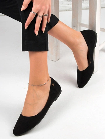 BL622 Czarne MICThe latest offer from the Sergio Leone brand is a series of ballerinas. The presented model is women's ballet shoes made of black velor-like fabric. The interior of these shoes is made of high-quality material, finished with a soft, natural leather insole. Comfort during use is increased by a flexible flat sole with a 1 cm high flat heel. The almond toe adds elegance. Very light and soft, they are perfect for warm days and for many styles. You must have one in your collection for the coming season.