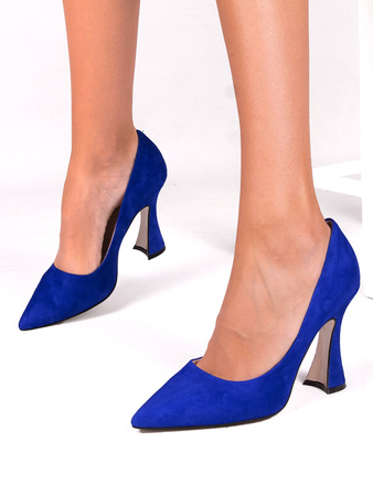 Visconi Pumps for women on the pillar, velor sapphire leather