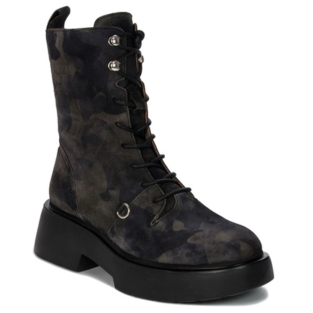 Wonders Women's Leather Boots On The Camo Platform Wonders Botki Damskie Skórzane Na Platformie Jungla Negro
