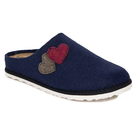 CS 35 004 NAVYInblu women's slippers are made entirely of navy blue felt material. Located on a thick sole. An additional advantage of the flaps is an insert made of natural leather. Perfect for cold winter evenings spent in the comfort of a warm home fireplace. This is a cut for women who value comfort and original design.