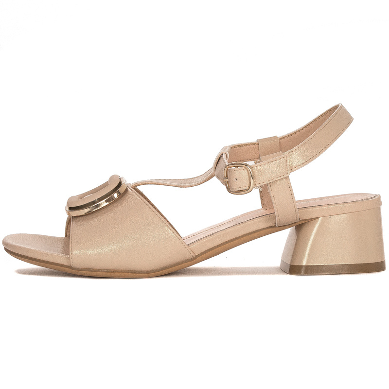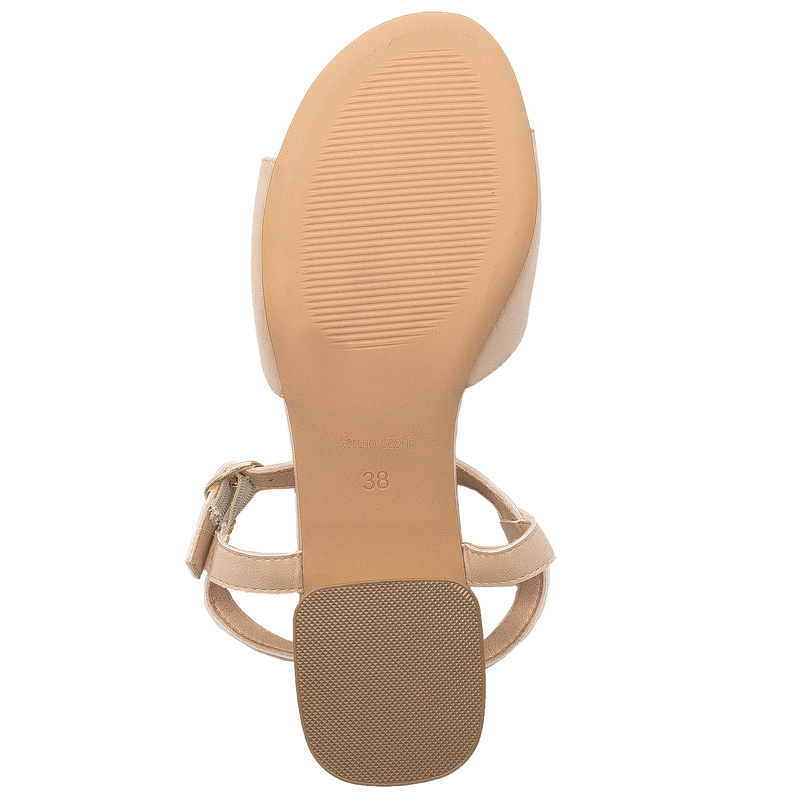 SK706CHAMOWitamy w naszym sklepie, gdzie prezentujemy eleganckie i stylowe damskie sandały na obcasie marki Sergio Leone! Te wyjątkowe sandały zostały wykonane z wysokiej jakości tworzywa skóropodobnego w urokliwym kolorze chamoiss, który dodaje im delikatności i subtelnego wyglądu. Cholewka jest starannie zaprojektowana, aby zapewnić wygodę noszenia oraz estetyczny wygląd. Wnętrze sandałów Sergio Leone jest wykończone również tworzywem, które jest miłe w dotyku i zapewnia komfort podczas długotrwałego noszenia. Wkładka jest wykonana z miękkiej skóry naturalnej, co daje uczucie luksusu na stopie. Podeszwa tych sandałów jest wykonana z wysokogatunkowego tworzywa, które zapewnia trwałość i stabilność. Obcas ma wysokość 4,5 centymetra, co sprawia, że są one idealne do codziennego noszenia, zarówno na specjalne okazje, jak i na co dzień. Dodatkowym elementem ozdobnym sandałów Sergio Leone jest ozdoba w kształcie kwadratowej obręczy umieszczonej na przodzie obuwia, dodająca im niebanalnego charakteru i oryginalności. Te damskie sandały na obcasie marki Sergio Leone to doskonałe połączenie stylu, wygody i jakości. Idealne do eleganckich, letnich stylizacji, zarówno na spotkania biznesowe, imprezy czy inne okazje, gdzie chcesz się wyróżnić. Zapraszamy do naszego sklepu, aby odkryć piękno i elegancję marki Sergio Leone!