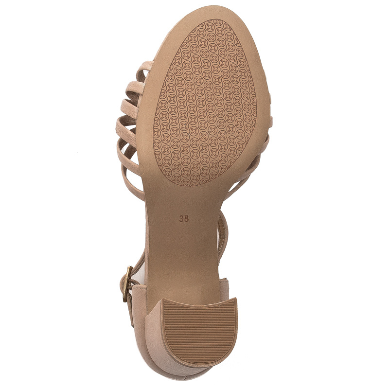 Maciejka Sandały Na Obcasie Damskie Skórzane Beżowy