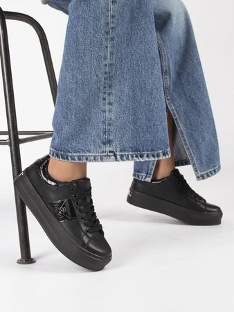 DP4707/23 BKPółbuty damskie to rodzaj obuwia, który nigdy nie wyjdzie z mody. Prezentowany model to najnowsza propozycja uznanej polskiej marki Filippo. Wierzch wykonany został z naturalnej skóry w kolorze czarnym. Cholewka ozdobiona elementami ze skóry naturalnej lakierowanej. Czubek buta ma okrągły kształt więc zapewnia palcom dużo swobody. Wkładkę i wnętrze wykonano ze skóry naturalnej. Podeszwa to platforma z wysokogatunkowego tworzywa o wysokości 4 cm. Tęgość obuwia standardowa - G. Jakość: I.