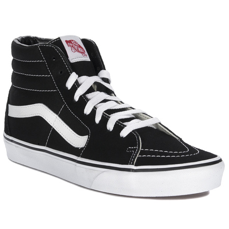 VN000D5IB8C1Trampki męskie wysokie znanej i cenionej na całym świecie marki Vans wykonane z czarnej skóry naturalnej zamszowej oraz tkaniny z linii Sk8-Hi. Wnętrze butów oraz wkładka uszyte są z miękkiej tkaniny. Okrągły kształt czubka zapewnia dużo miejsca na palce stóp. Sznurowadła czynią obuwie łatwe w zakładaniu i dostosowaniu do stopy. Płaska podeszwa wykonana z wysokiej jakości tworzywa ma wysokość 3 cm. Trampki są lekkie i praktyczne, dzięki czemu stanowią doskonałe uzupełnienie każdego sportowego lub casualowego stroju.