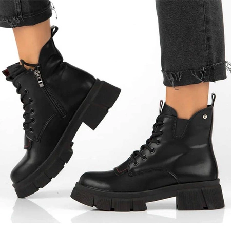 Filippo Botki Damskie Ocieplane Skórzane Czarne