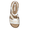608C4-80Białe sandały damskie Rieker to doskonałe połączenie letniej lekkości i codziennej wygody. Ich klasyczny design z krzyżującymi się paskami pasuje zarówno do sukienek, jak i luźniejszych stylizacji. Buty wyposażone są w praktyczne zapięcie na rzep, które zapewnia idealne dopasowanie do stopy. Niski obcas na platformie (3,5 cm) gwarantuje komfort nawet przy dłuższym użytkowaniu. Miękkie wnętrze z wysokogatunkowego tworzywa sprawia, że każdy krok to czysta przyjemność. To uniwersalny model na lato, który z łatwością dopasujesz do swojego stylu.
