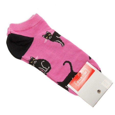 Skarpetki stopki damskie Milena Różowe Czarny Kot
