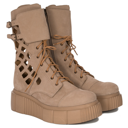 Maciejka Botki damskie ażurowe beżowe