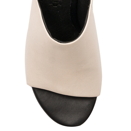 Marco Tozzi Klapki damskie na obcasie skórzane cream/black